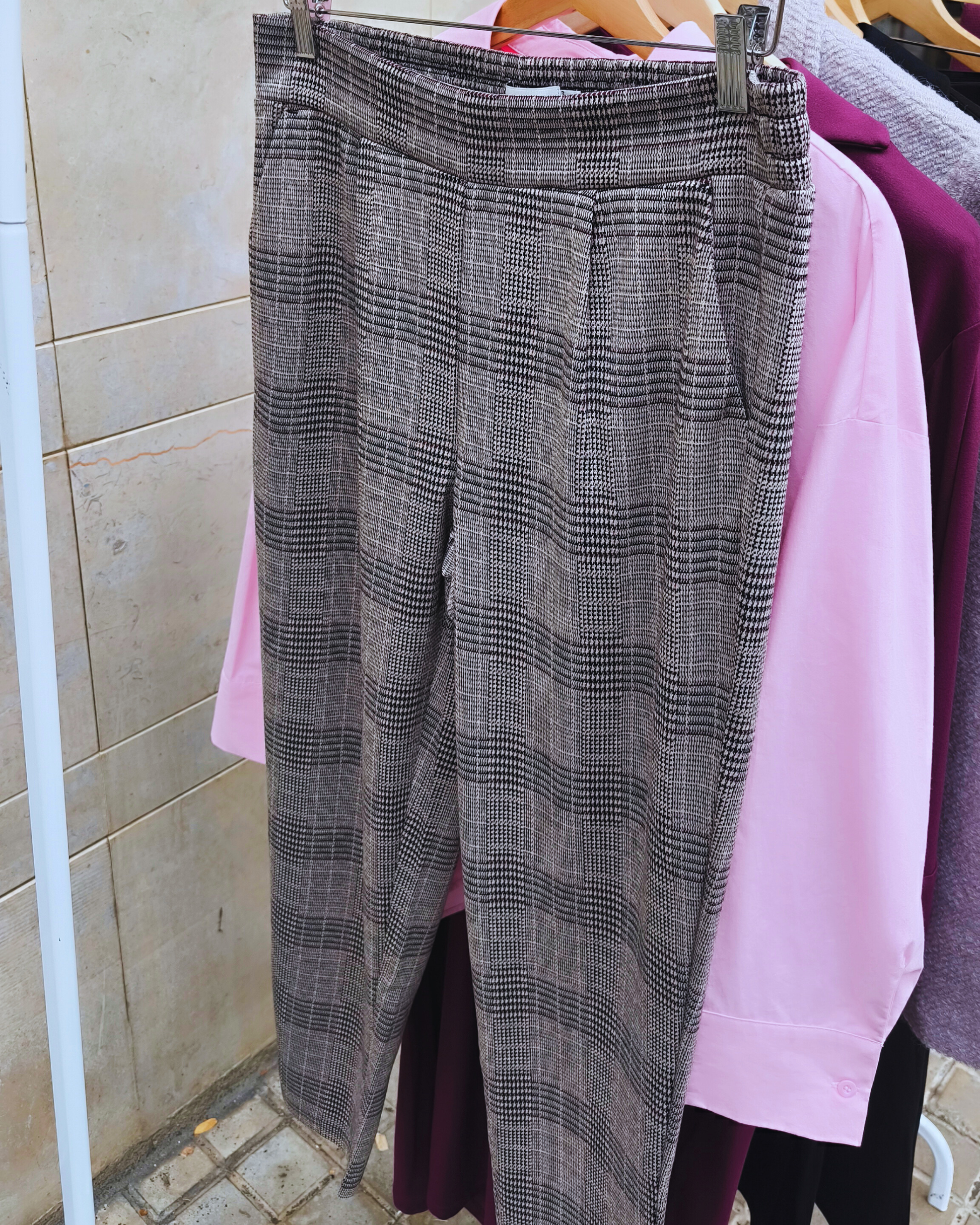 Pantalón de ICHI en tejido de cuadros con corte fluido y línea tailored. Una reinterpretación del clásico modelo Kate, que combina elegancia y comodidad con un aire contemporáneo ideal para looks de día o de trabajo.